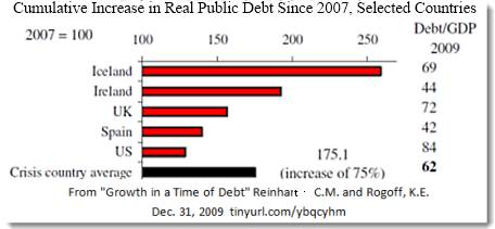 A variation of the causality critique is obvious. Iceland, Ireland, and Spain were subject to various manipulations by internal and international finance. The governments of the UK and US were subject to and enablers of the same manipulations. The variable that's missing is outside manipulation and government complicity in that manipulation. Absent the machinations of Wall Street and the City of London, would any of these countries have the same Debt-to-GDP ratios?